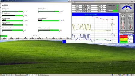 Auf dem Bild ist rechts die Prins-software zu sehen. Die untere Linie zeigt den Druckverlauf an. Sie steigt von 2,34 bis auf 3,08 bar an. Danach ist zu erkennen, wie die Drehzahl schwankt. (obere Linie). Der Motor ist noch nicht ganz warmgefahren, wie man anhand der Temperaturen rechts sehen kann. Kann dieser Druckverlauf dazu führen, dass im Extremfall der Motor abstirbt?